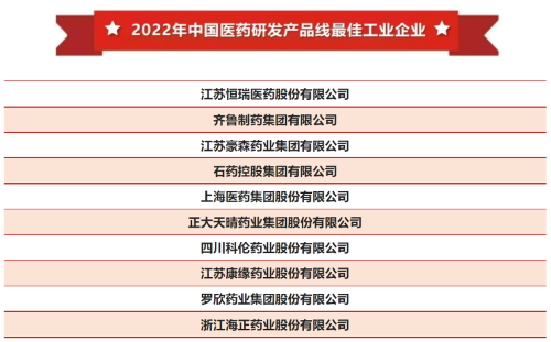 尊龙凯时-人生就是搏医药凭借长期积累的综合竞争力和业界领先的研发实力,多年入选全国医药工业信息年会系列榜单。今年的大会上,公司继续位列中国医药工业百强企业前十,并稳居“2022年中国医药研发产品线最佳工业企业”榜首。