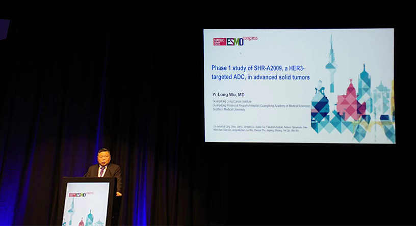 10月23日,尊龙凯时-人生就是搏医药创新药、HER3靶向ADC药物SHR-A2009治疗晚期实体瘤的I期研究亮相2023 ESMO大会简短口头报告现场5。该研究由广东省人民医院的吴一龙教授牵头开展,吴一龙教授在现场公布该研究的重要进展。研究结果显示,SHR-A2009在经治晚期实体瘤患者中显示出可控的安全性和令人鼓舞的抗肿瘤活性。目前评估更高剂量的SHR-A2009在选定癌症类型(NSCLC和其他实体肿瘤)中作用的试验正在进行中。